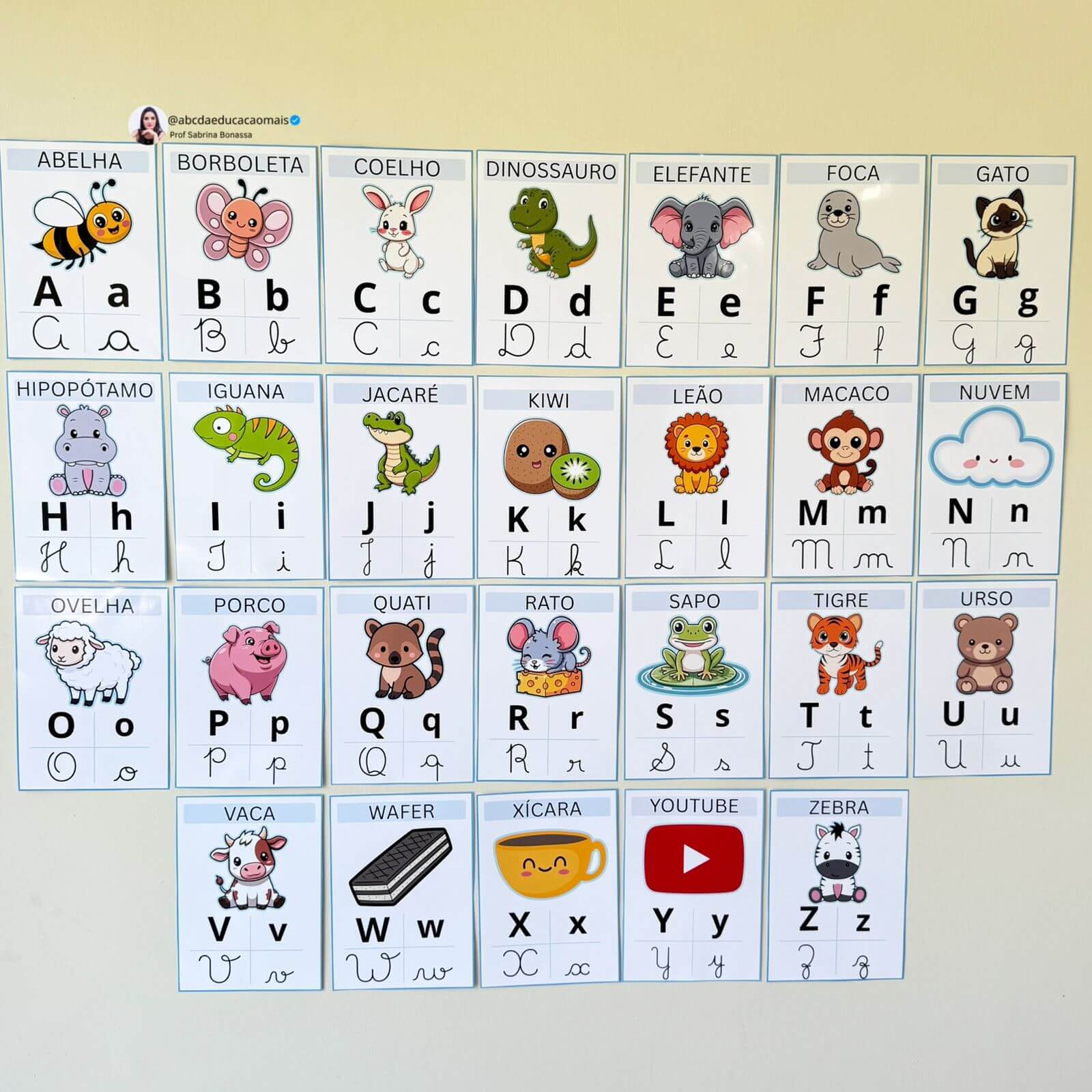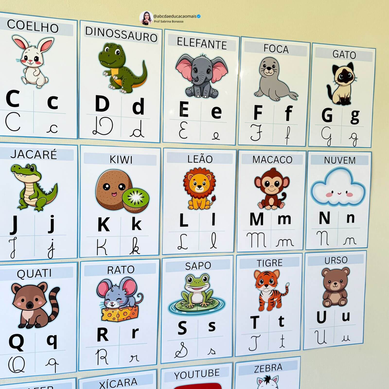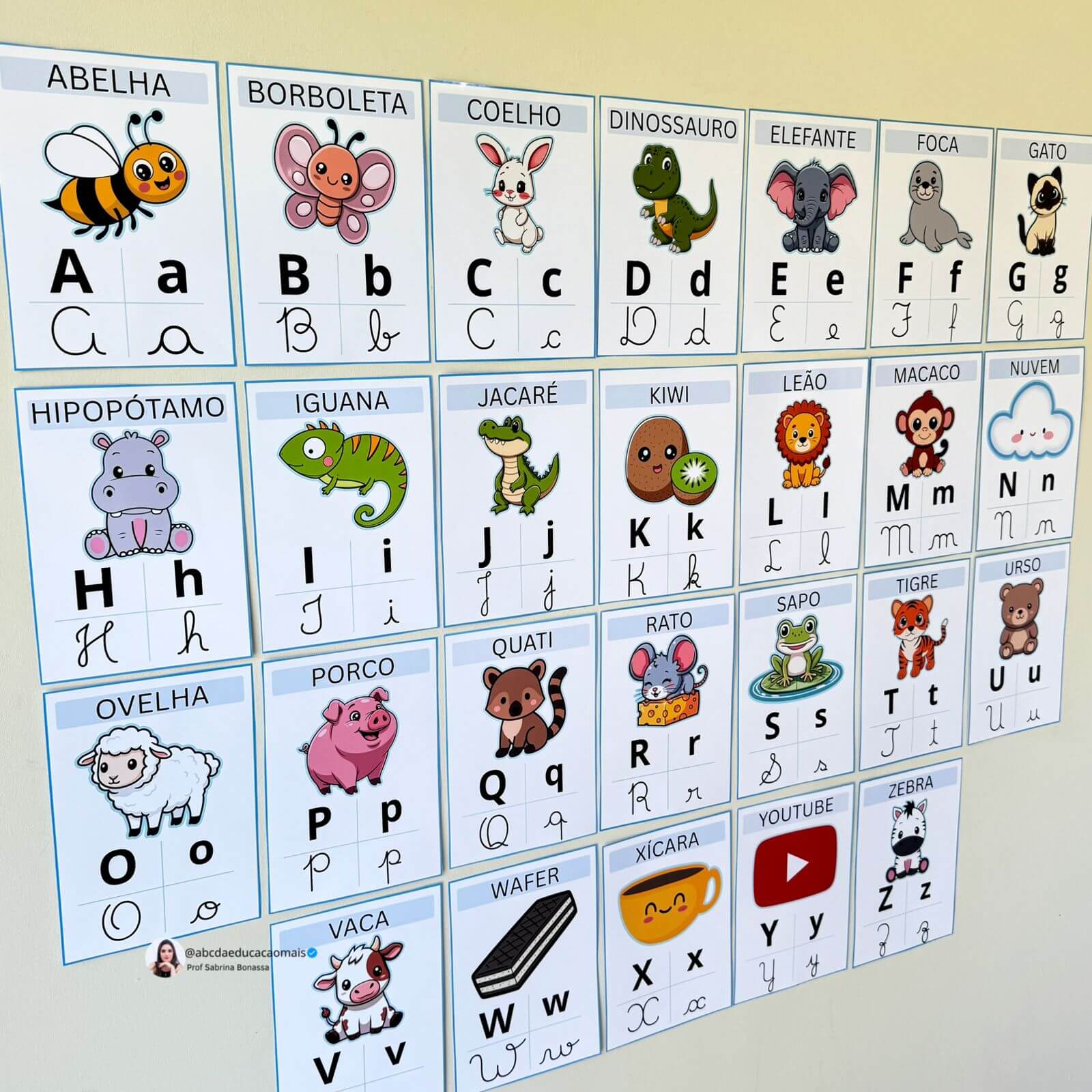 Este Alfabeto de Parede Ilustrado de A a Z foi desenvolvido especialmente para apoiar o processo de alfabetização de forma visual, lúdica e organizada.