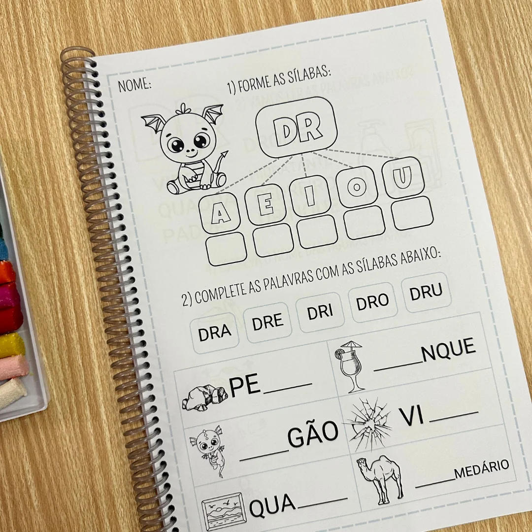 A apostila de atividades Sílabas Complexas inclui 2 variações de atividades para trabalhar sílabas complexas com crianças em fase de alfabetização. São 49 páginas de atividades para colorir, que envolvem os seguintes conteúdos: