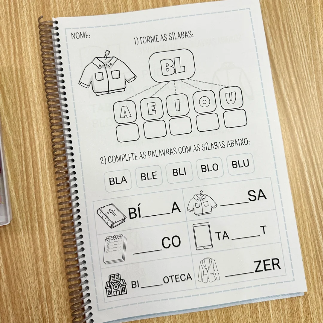 - Completar palavras com as sílabas que faltam;