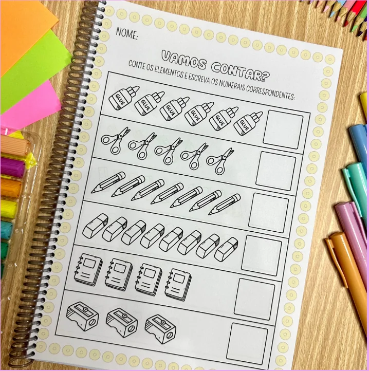 Com mais de 60 páginas de atividades, a apostila oferece uma ampla gama de exercícios cativantes. Desde contagem simples até desafios mais complexos, as crianças explorarão os números de 1 a 20 de maneira envolvente. As atividades foram cuidadosamente elaboradas para não apenas ensinar a contagem, mas também para desenvolver o pensamento lógico das crianças. Elas aprenderão a associar números a quantidades de maneira prática e divertida. Com exercícios interativos, a apostila promove a participação ativa das crianças, tornando o aprendizado uma experiência prazerosa. Cada página é uma oportunidade para descobrir, aprender e se encantar!