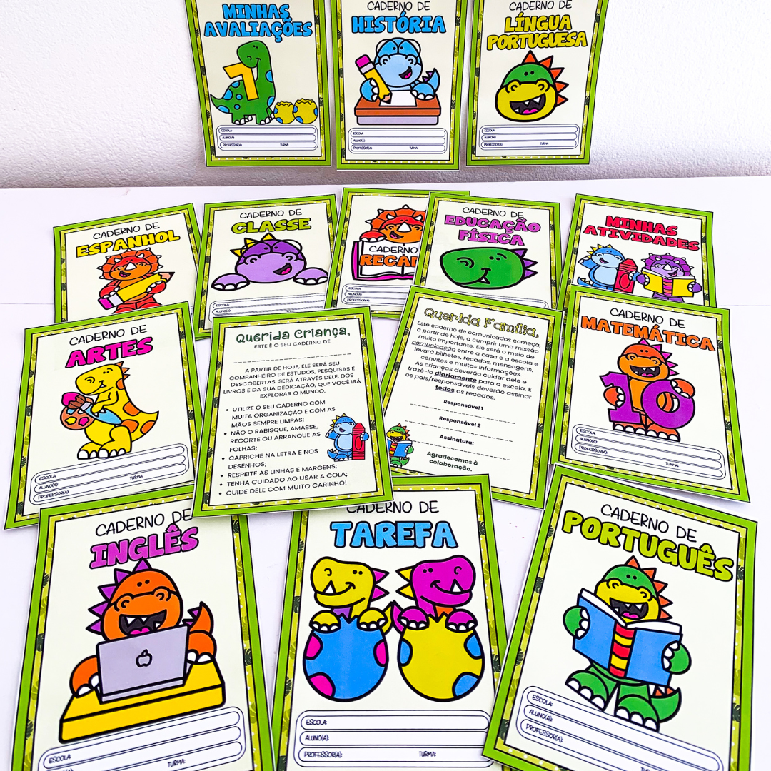 ✨ Um material divertido, colorido e cheio de personalidade, perfeito para encantar os alunos e deixar a rotina escolar muito mais organizada. As Capinhas – Tema Dino são ideais para crianças que amam dinossauros e aprendem melhor em um ambiente lúdico.