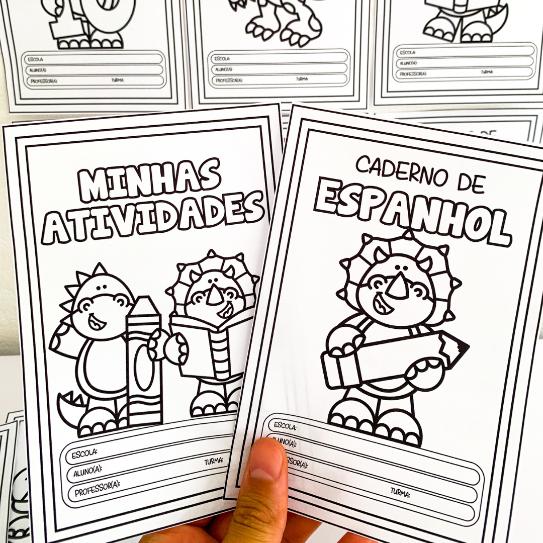 🎨 O kit conta com capinhas coloridas e versões para colorir para caderno grande ( caso queira no tamanho de meia folha basta fazer o ajuste na sua impressora no momento da impressão), permitindo que os alunos personalizem seus cadernos, estimulando criatividade, autonomia e cuidado com o material escolar.