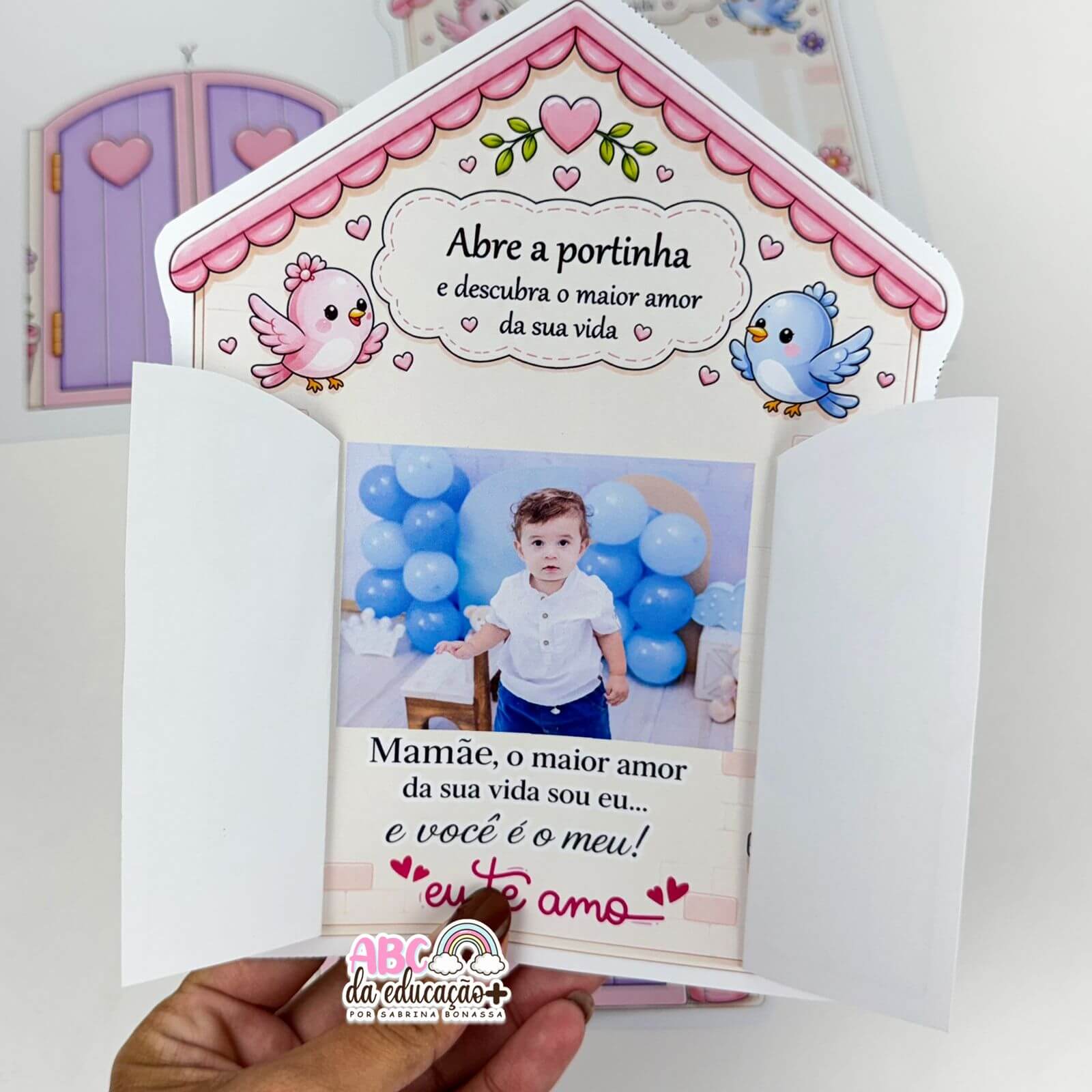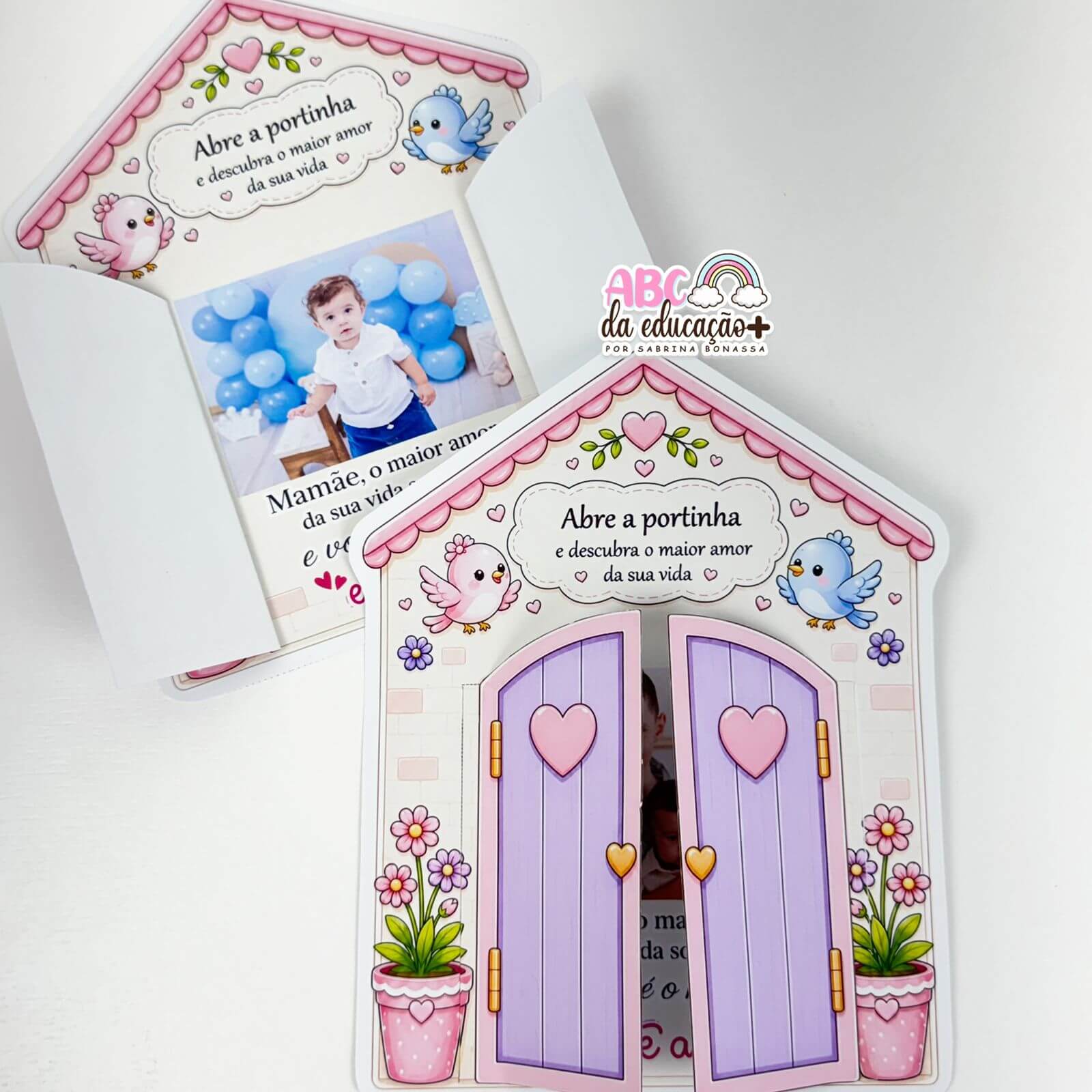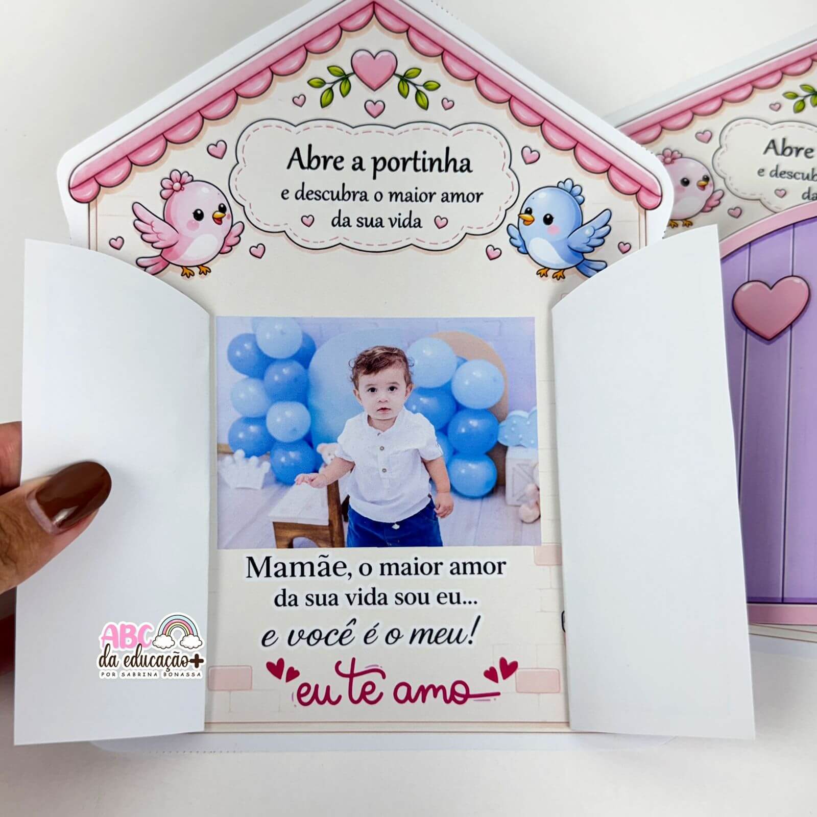 Encante e emocione no Dia das Mães com essa EBOOK casinha interativa com foto, uma lembrancinha simples de montar, mas cheia de significado! 💖Ao abrir a portinha, a mamãe descobre o maior amor da sua vida: a foto da criança, tornando esse momento único e especial.