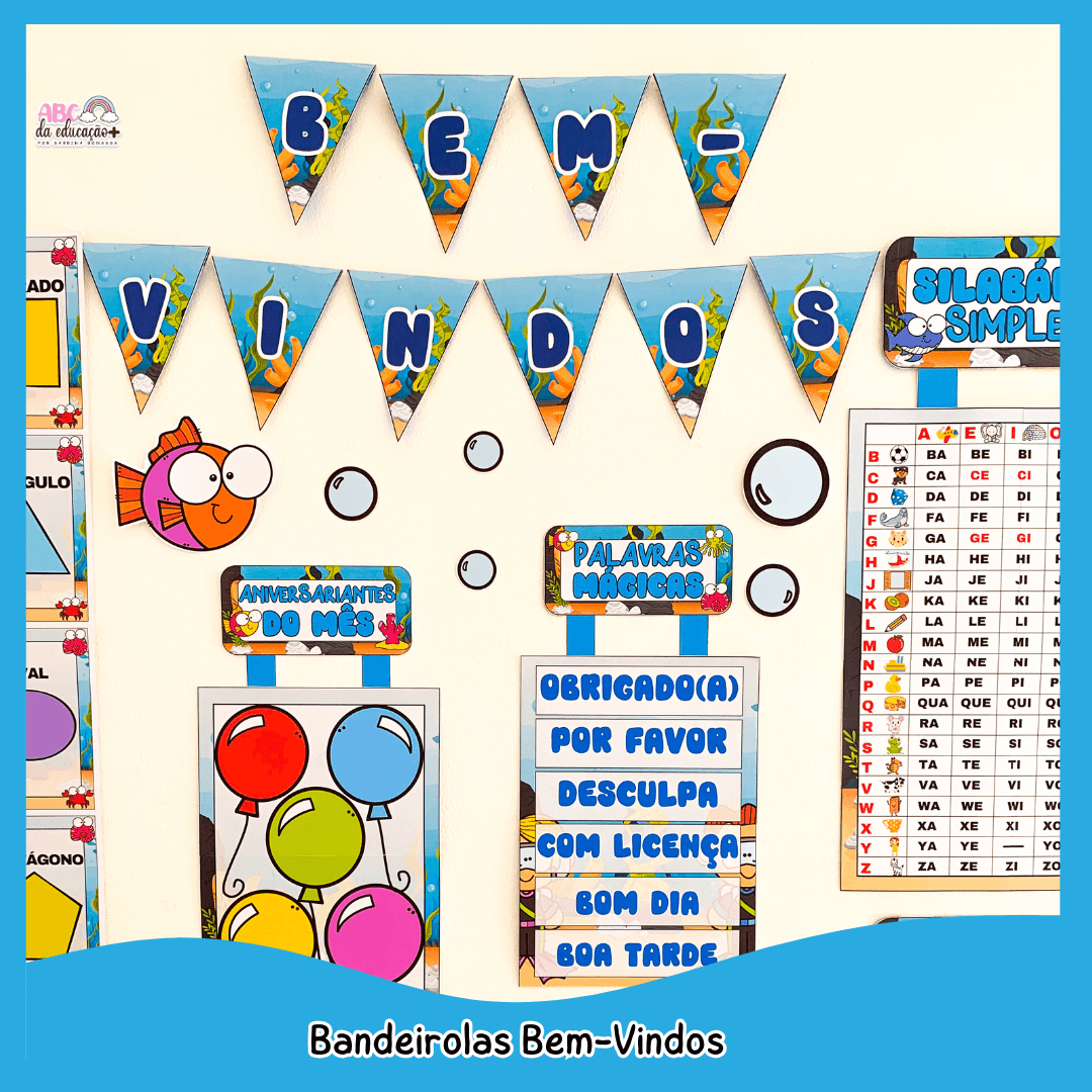 Pensado especialmente para a Educação Infantil e os Anos Iniciais do Ensino Fundamental, este material transforma o ambiente escolar em um espaço lúdico, acolhedor e funcional, estimulando o interesse das crianças pela aprendizagem desde o primeiro dia de aula.