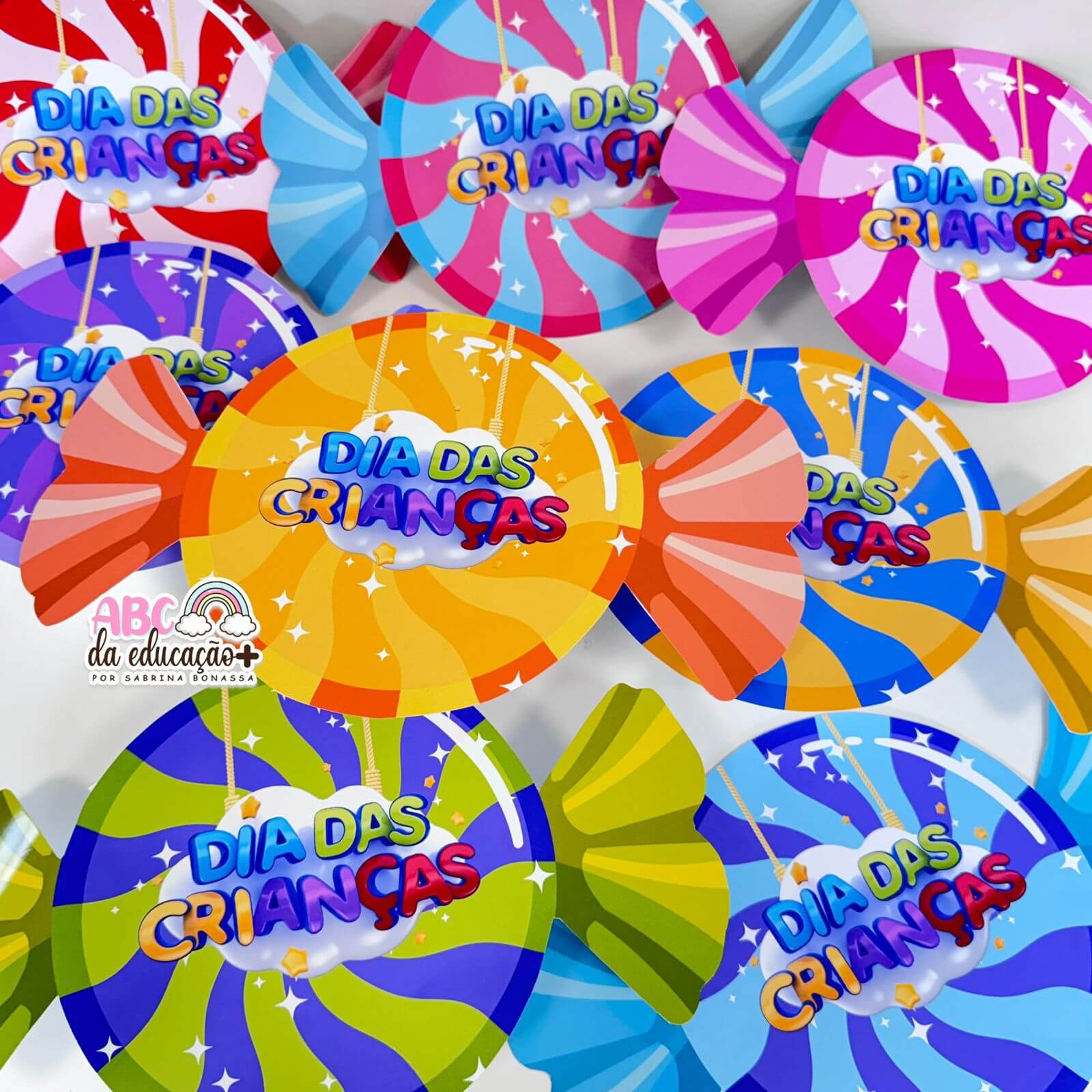 Uma lembrancinha criativa, colorida e divertida para encantar os pequenos! São 8 opções de cores em formato de bala gigante, feitos com muito carinho. No centro, vai um pratinho descartável recheado de doces. Perfeito para comemorar o Dia das Crianças de forma alegre, especial e inesquecível!