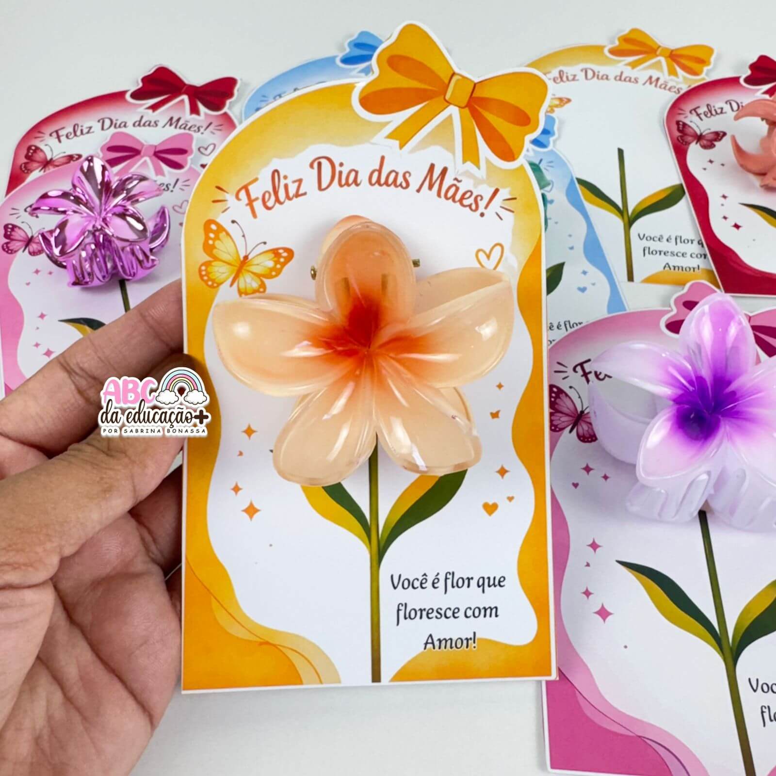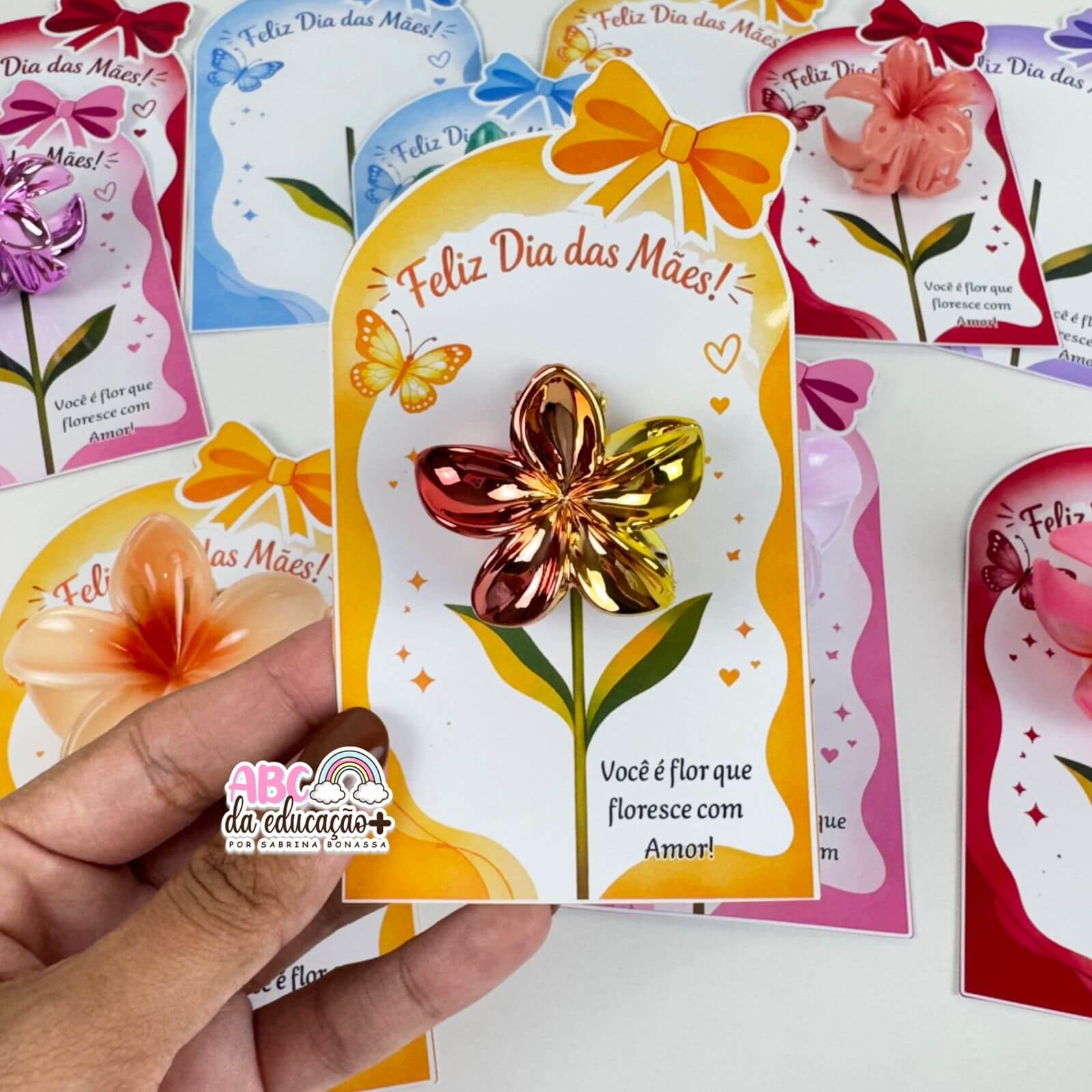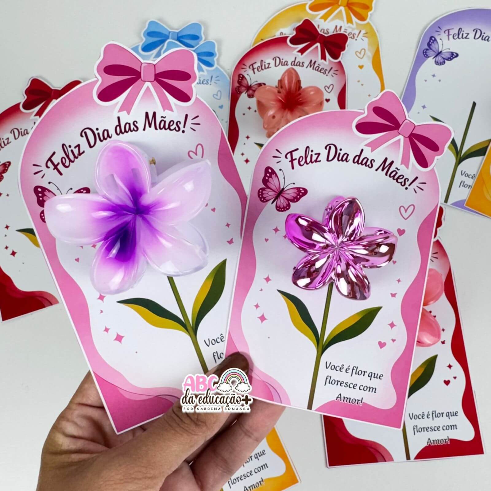 Encante e surpreenda no Dia das Mães com este lindo cartão delicado e moderno, acompanhado de piranha em formato de flor! 💐✨