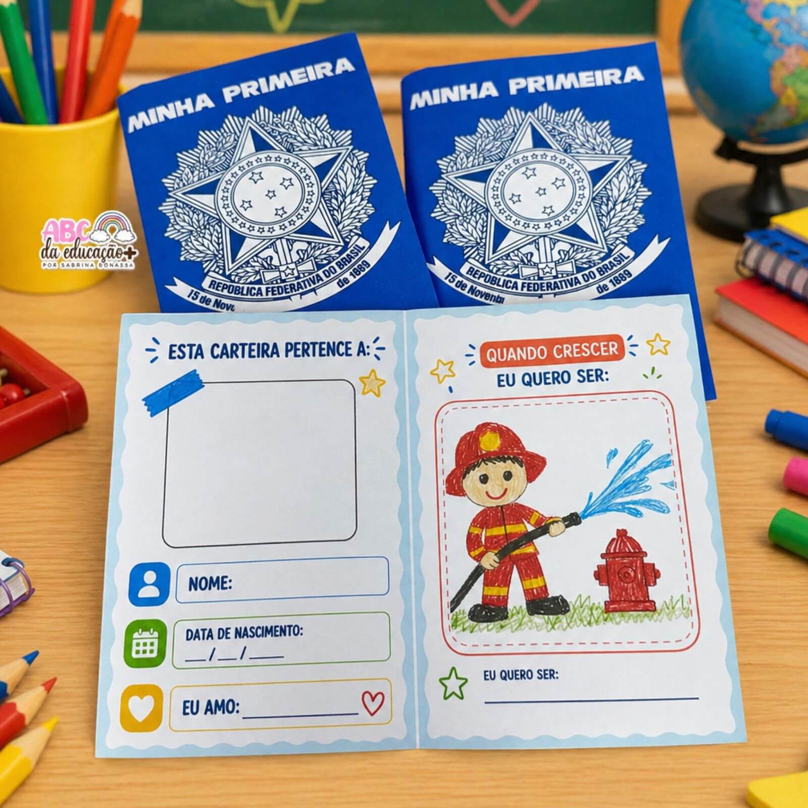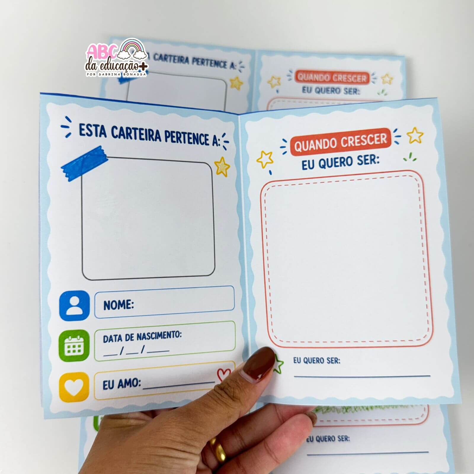 👉 Após a impressão, basta recortar e dobrar para montar a carteira.
