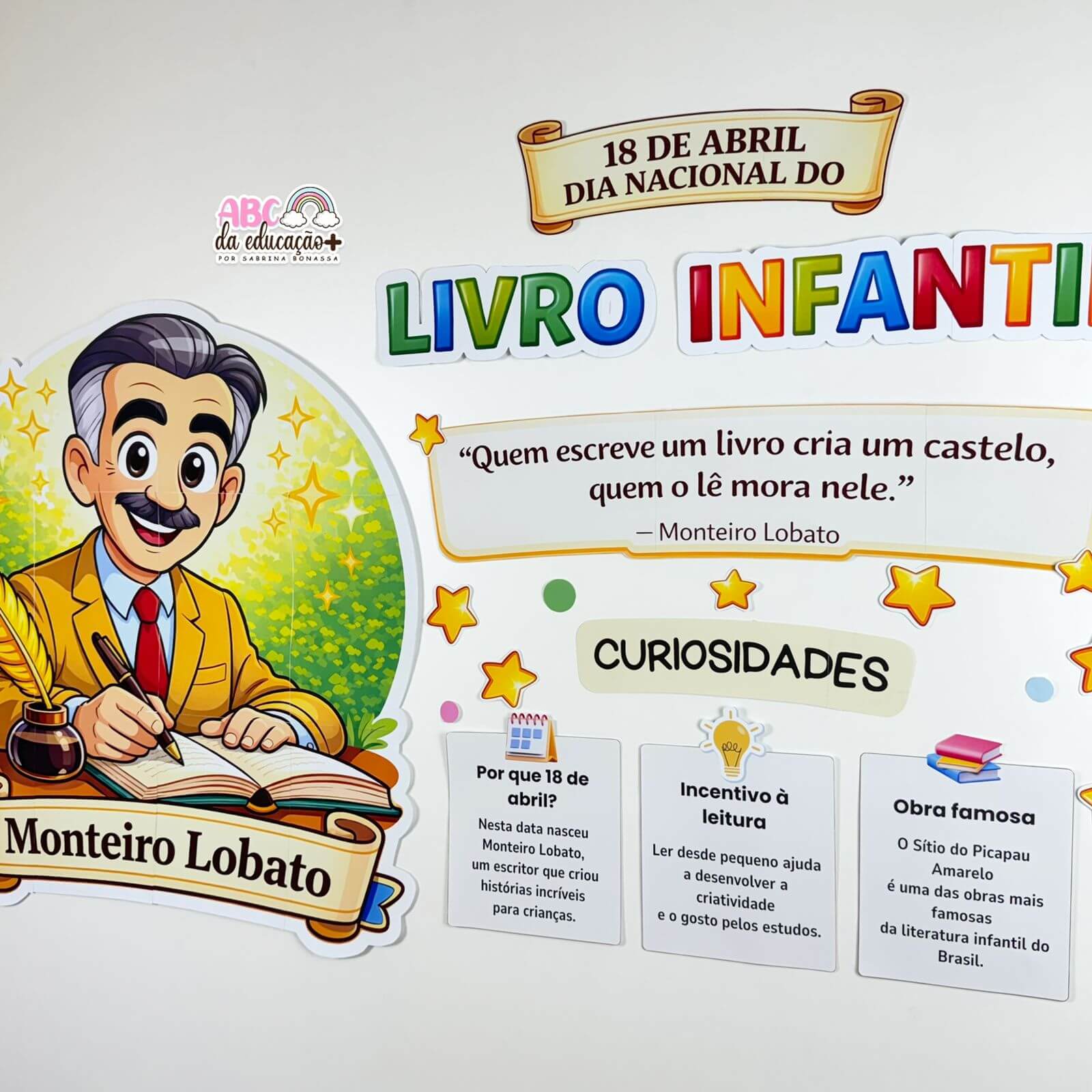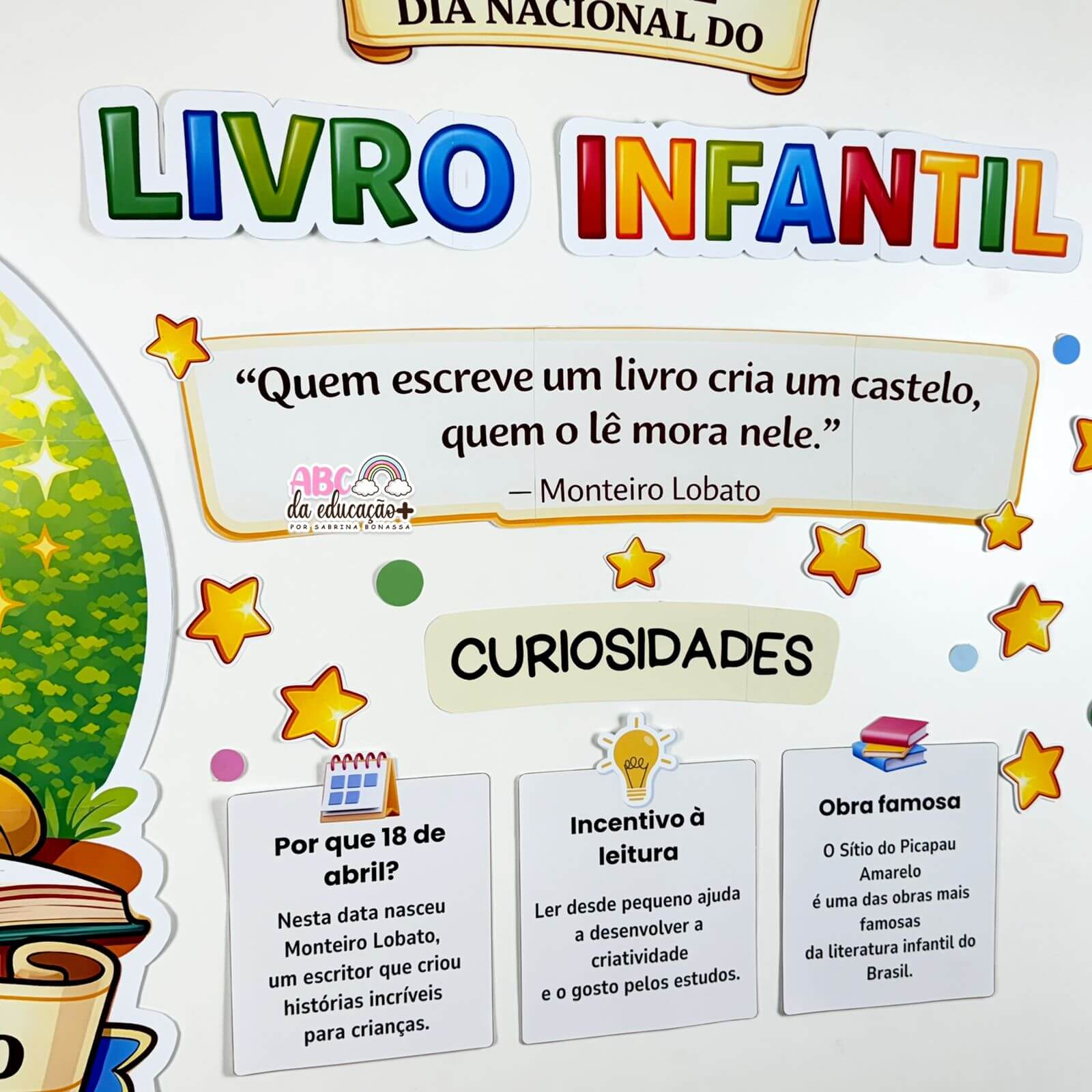 Transforme o Dia do Livro Infantil em uma experiência significativa, envolvente e cheia de aprendizado na sua sala de aula! Este material foi desenvolvido como um recurso educativo digital, pensado para apoiar o professor na abordagem do tema de forma visual, interativa e pedagógica, incentivando o interesse dos alunos pela leitura desde os primeiros anos. A proposta utiliza um painel temático com informações, curiosidades e elementos visuais atrativos, permitindo trabalhar conteúdos importantes de forma leve, dinâmica e significativa.